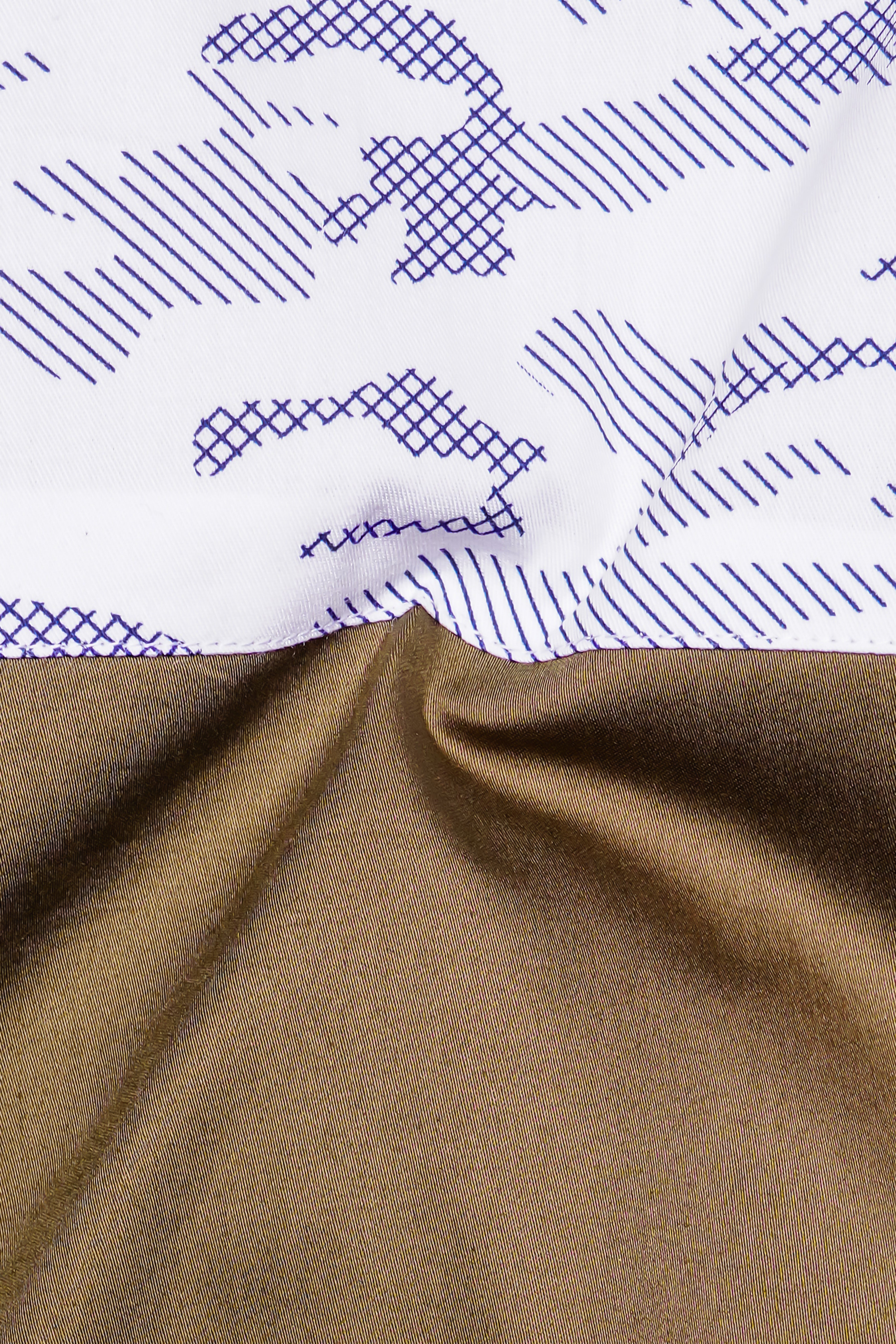 Hemlock Brown with Bright White Stitched Design Super Soft Premium Cotton Designer Shirt.Hemlock Brown with Bright White Stitched Design Super Soft Premium Cotton Designer Shirt.