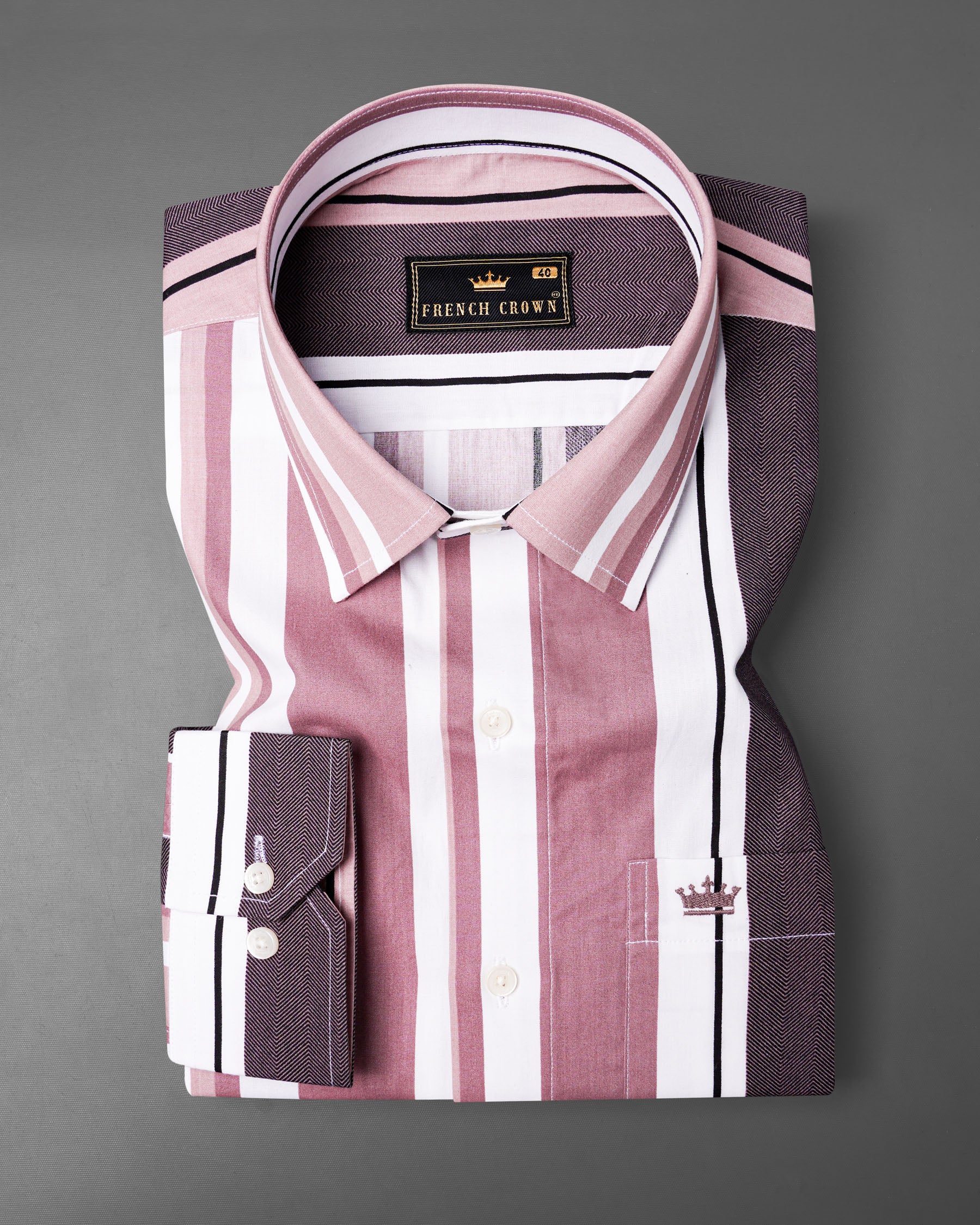 Bright White and Pansy Pink Striped Premium Cotton ShirtBright White and Pansy Pink Striped Premium Cotton Shirt