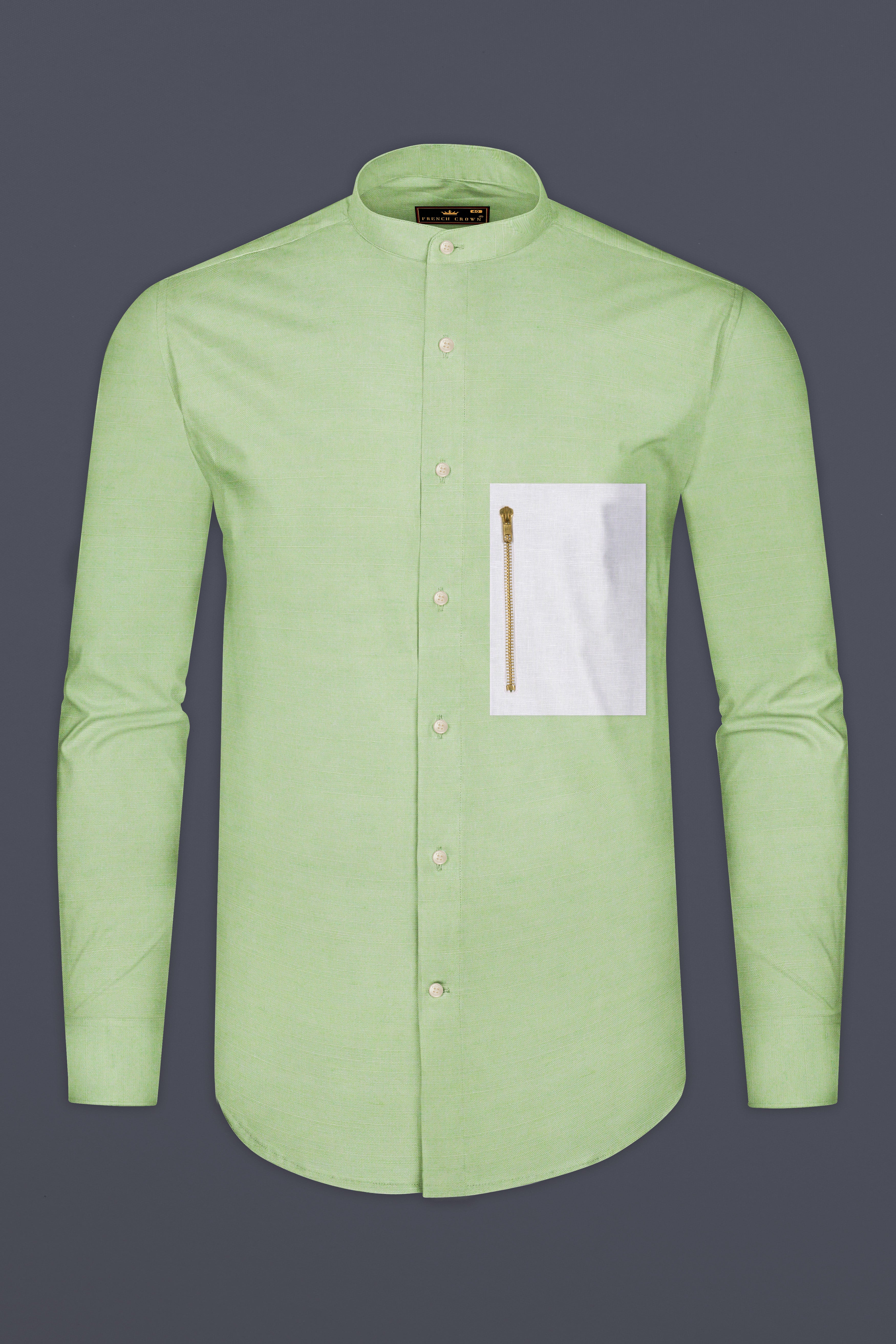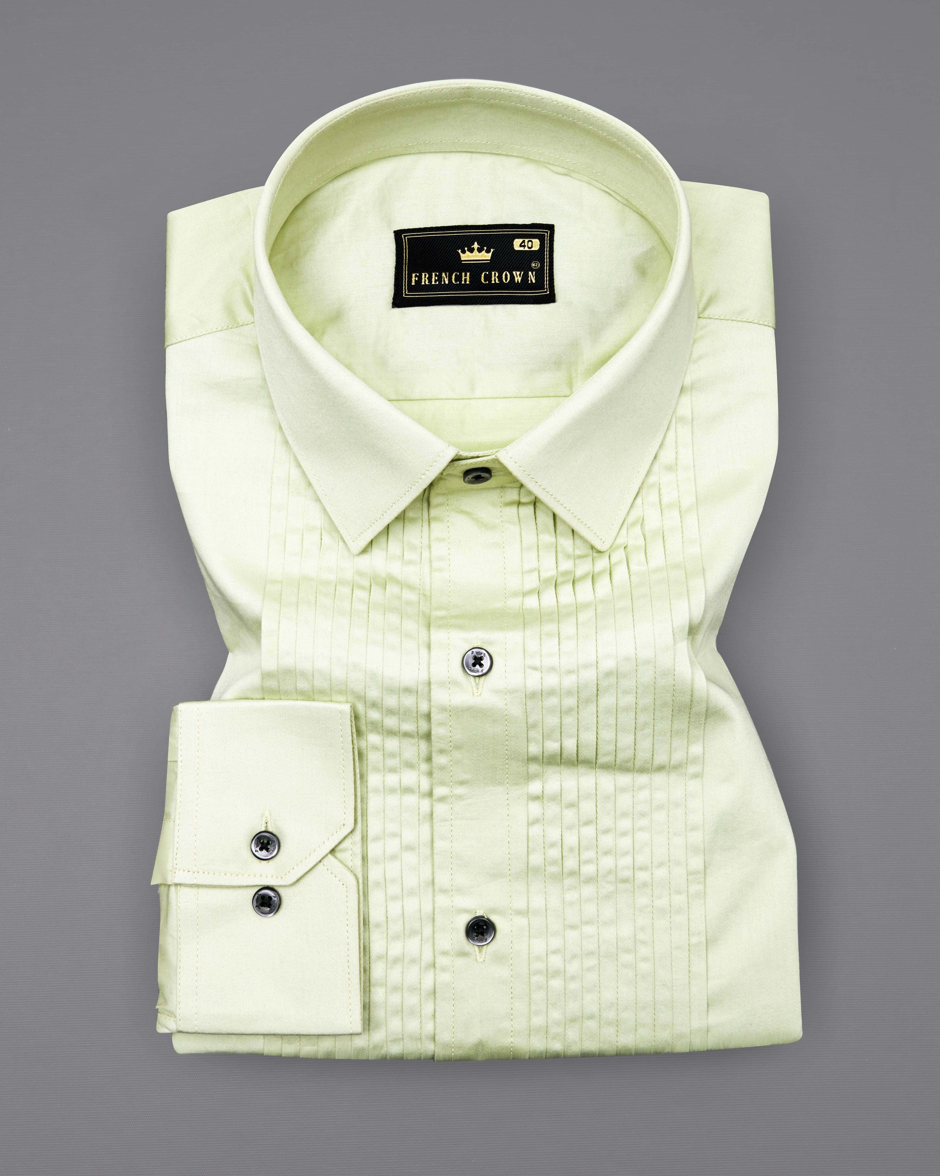 Bone Green Subtle Sheen Snake Pleated Super Soft Premium Cotton Tuxedo Shirt