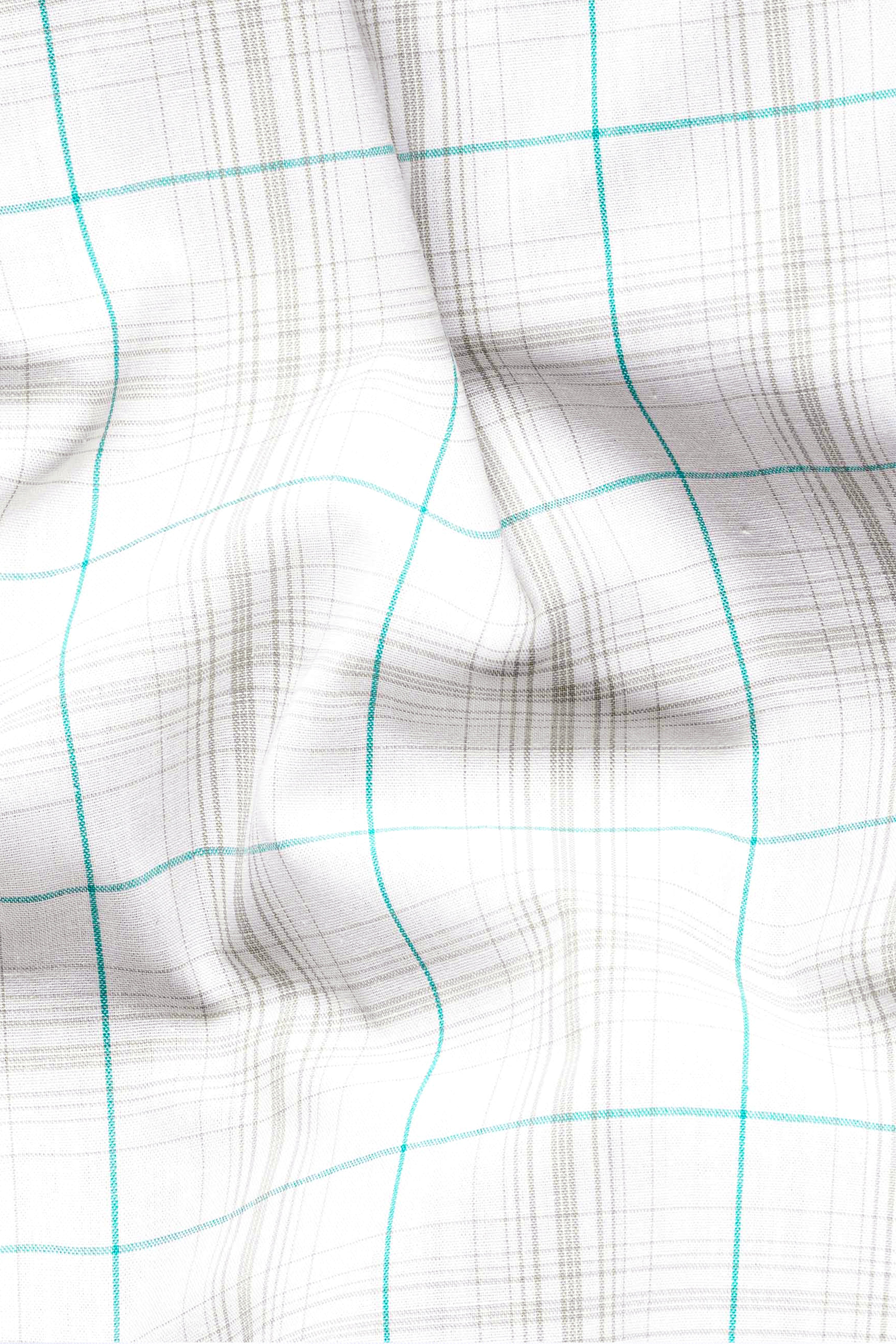 Bright White with Turquoise Blue and Foggy Gray Plaid Premium Cotton ShirtBright White with Turquoise Blue and Foggy Gray Plaid Premium Cotton Shirt