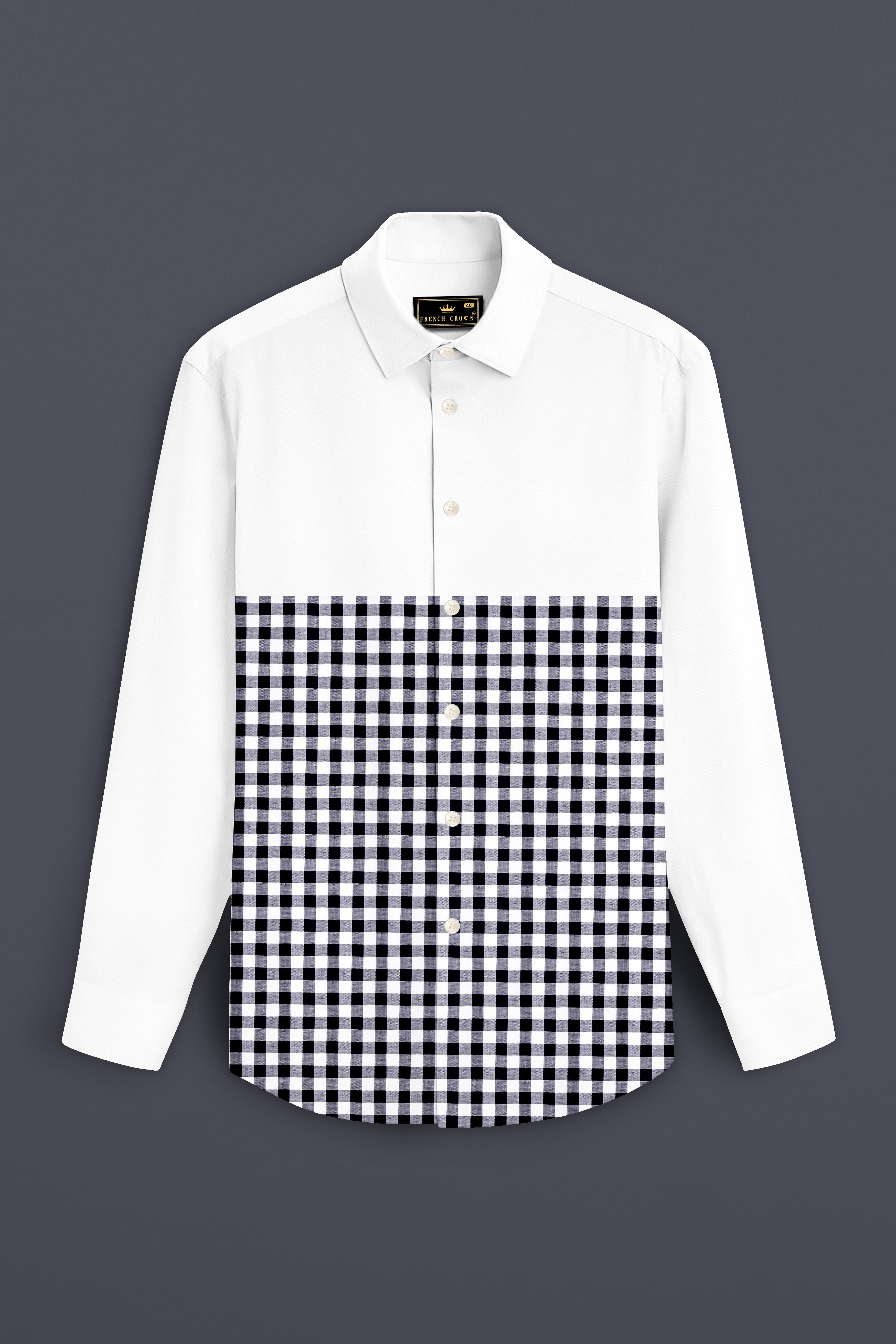 Bright White with Gingham Premium Cotton Designer ShirtBright White with Gingham Premium Cotton Designer Shirt