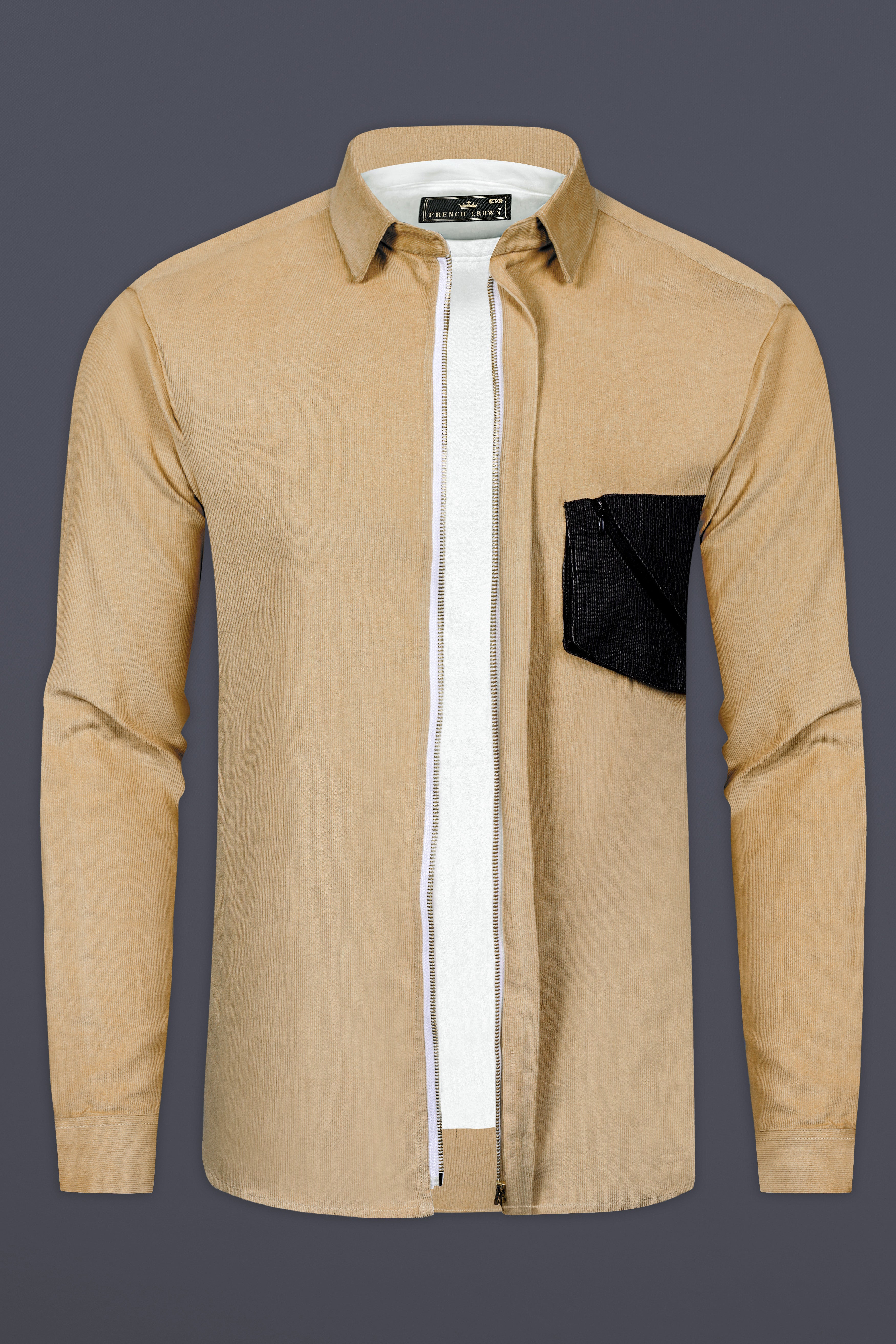 Brandy Brown Corduroy Designer Overshirt/Shacket With Zipper Fastening