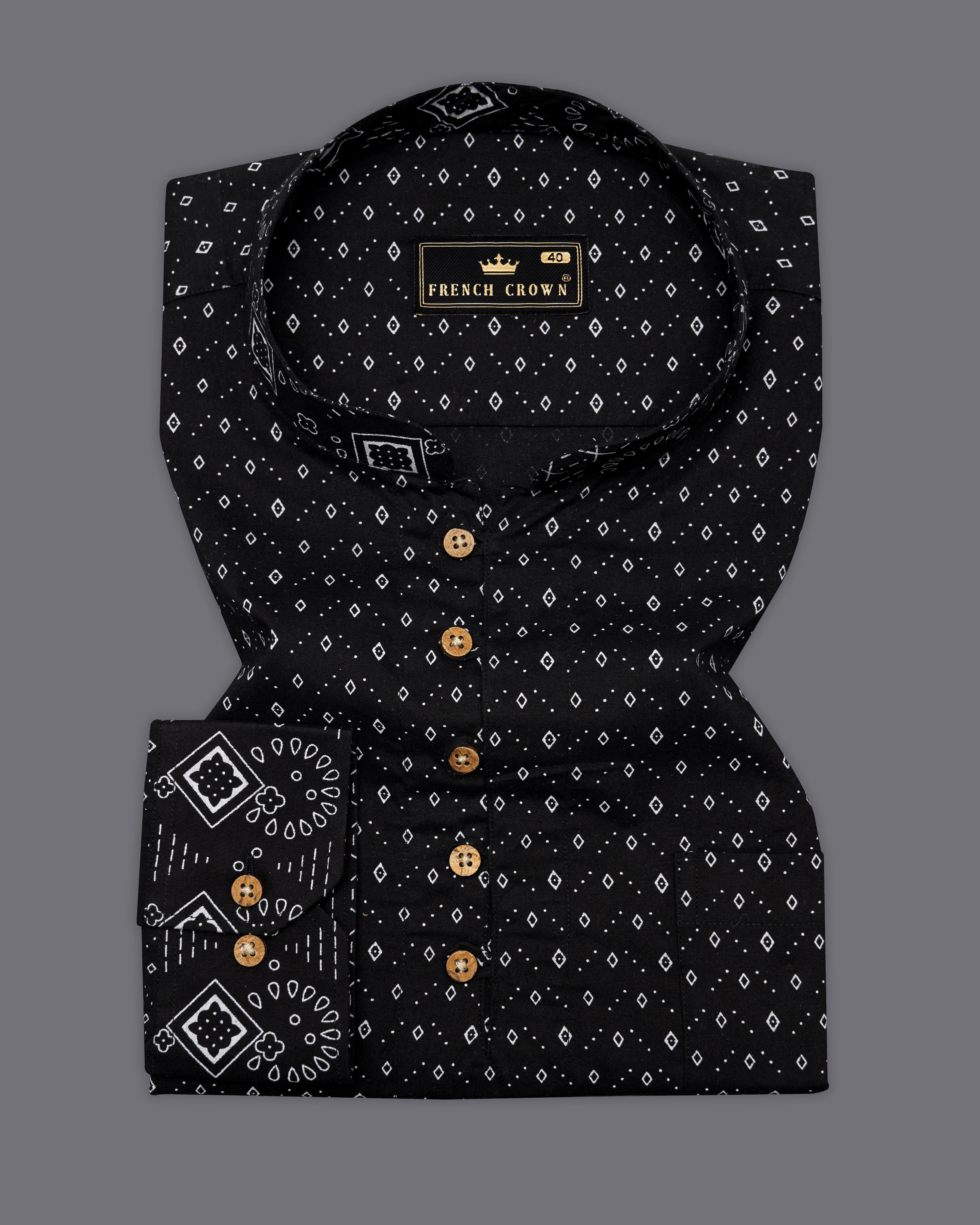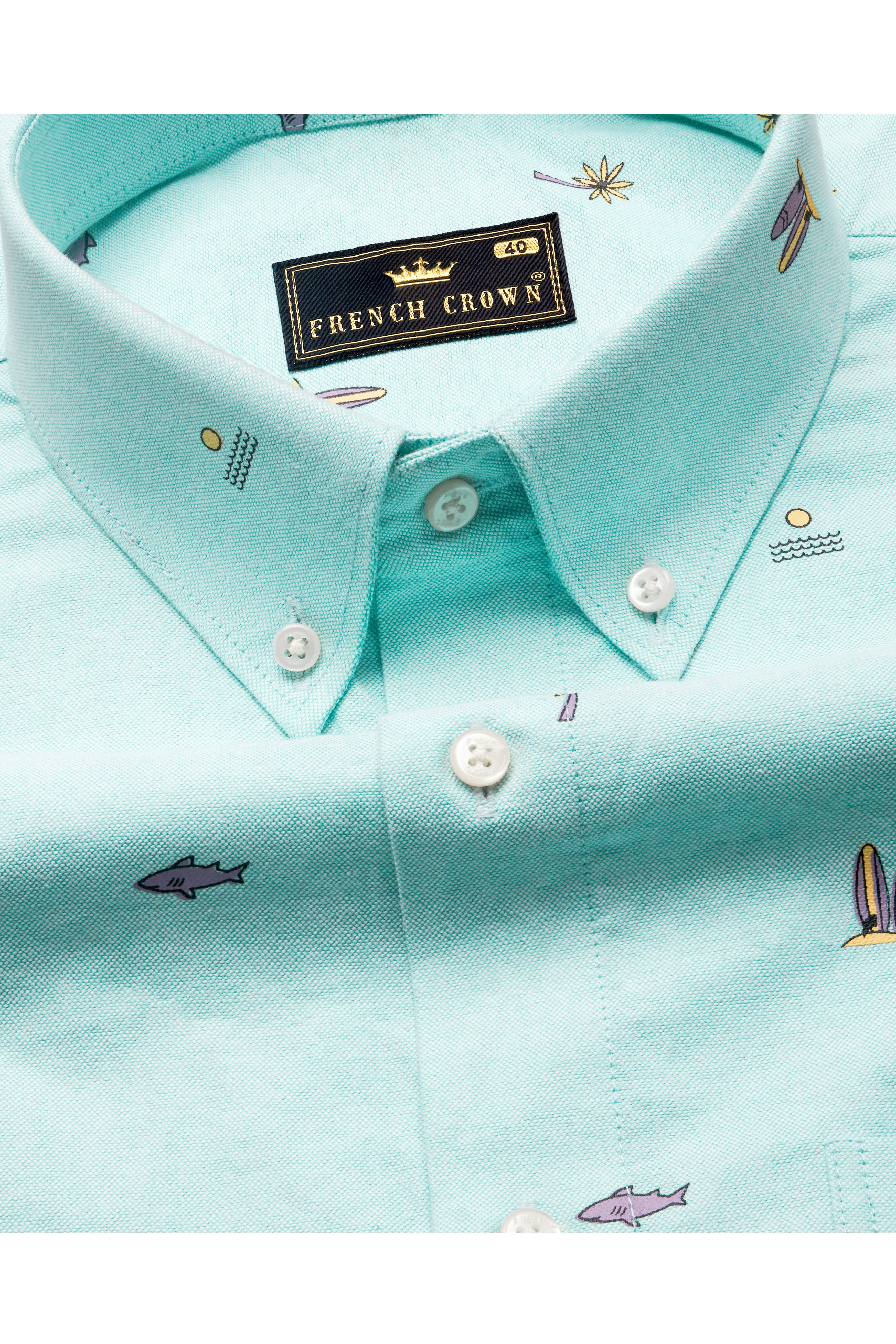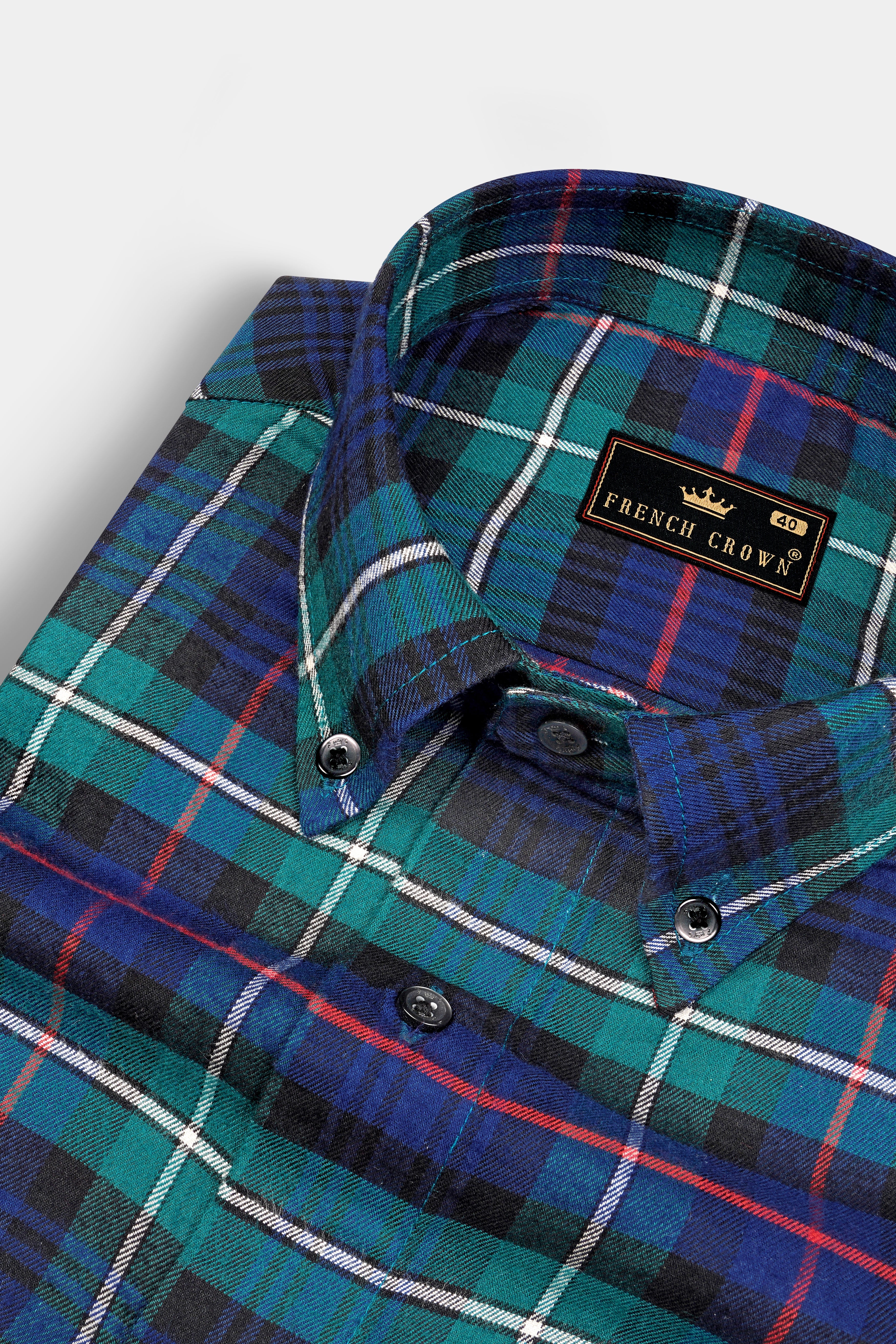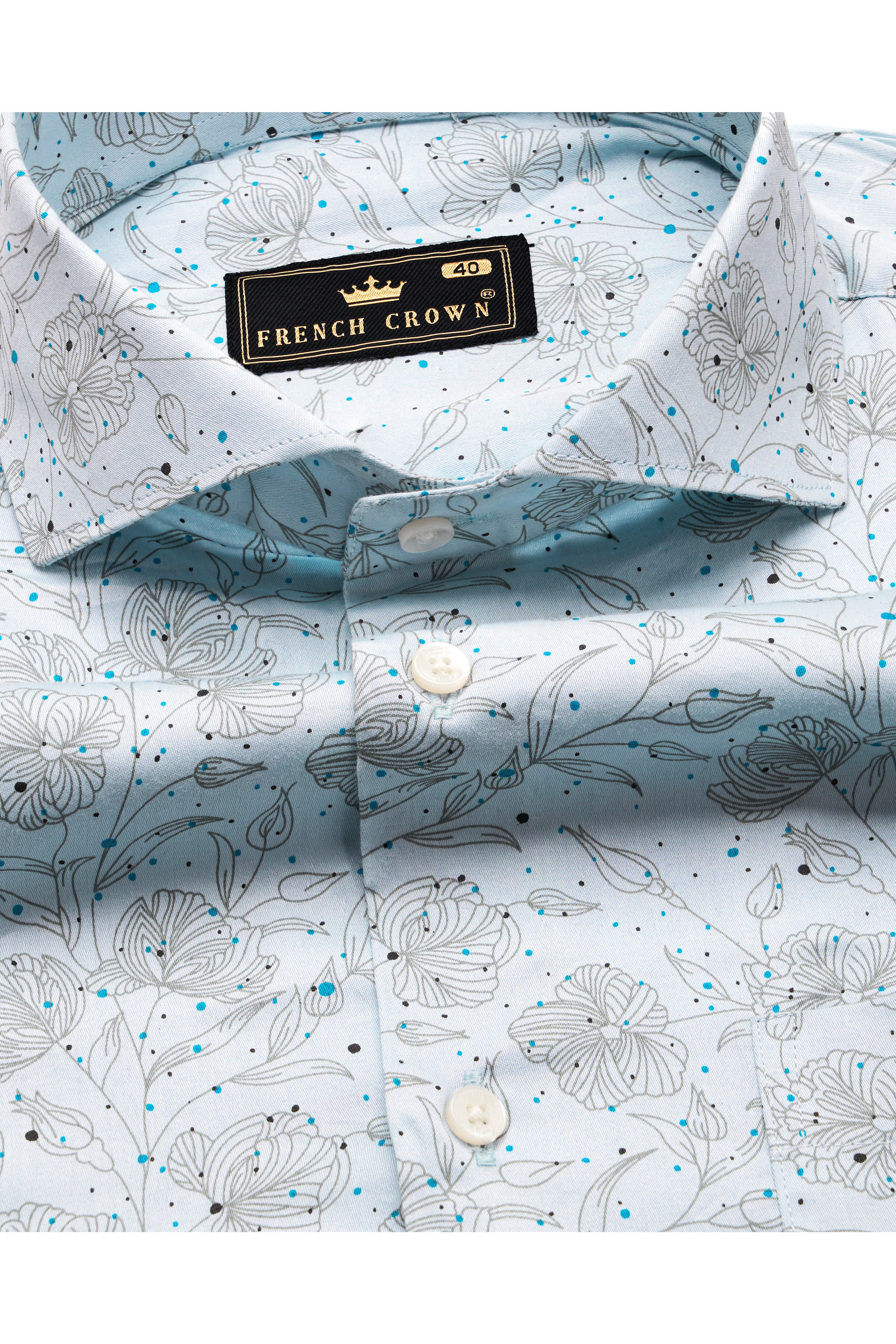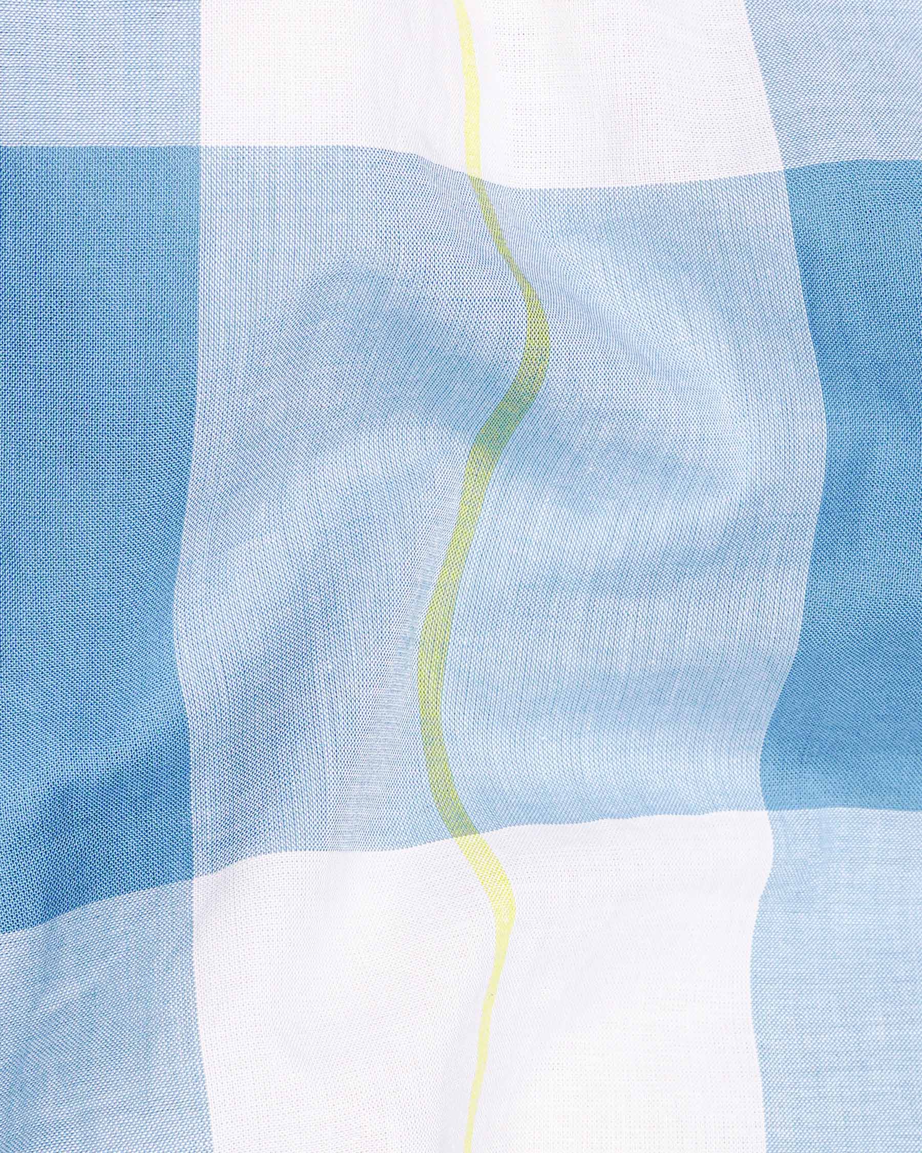 Rhino Blue and White Plaid with Animated Creature Patchwork Twill Premium Cotton Designer Shirt