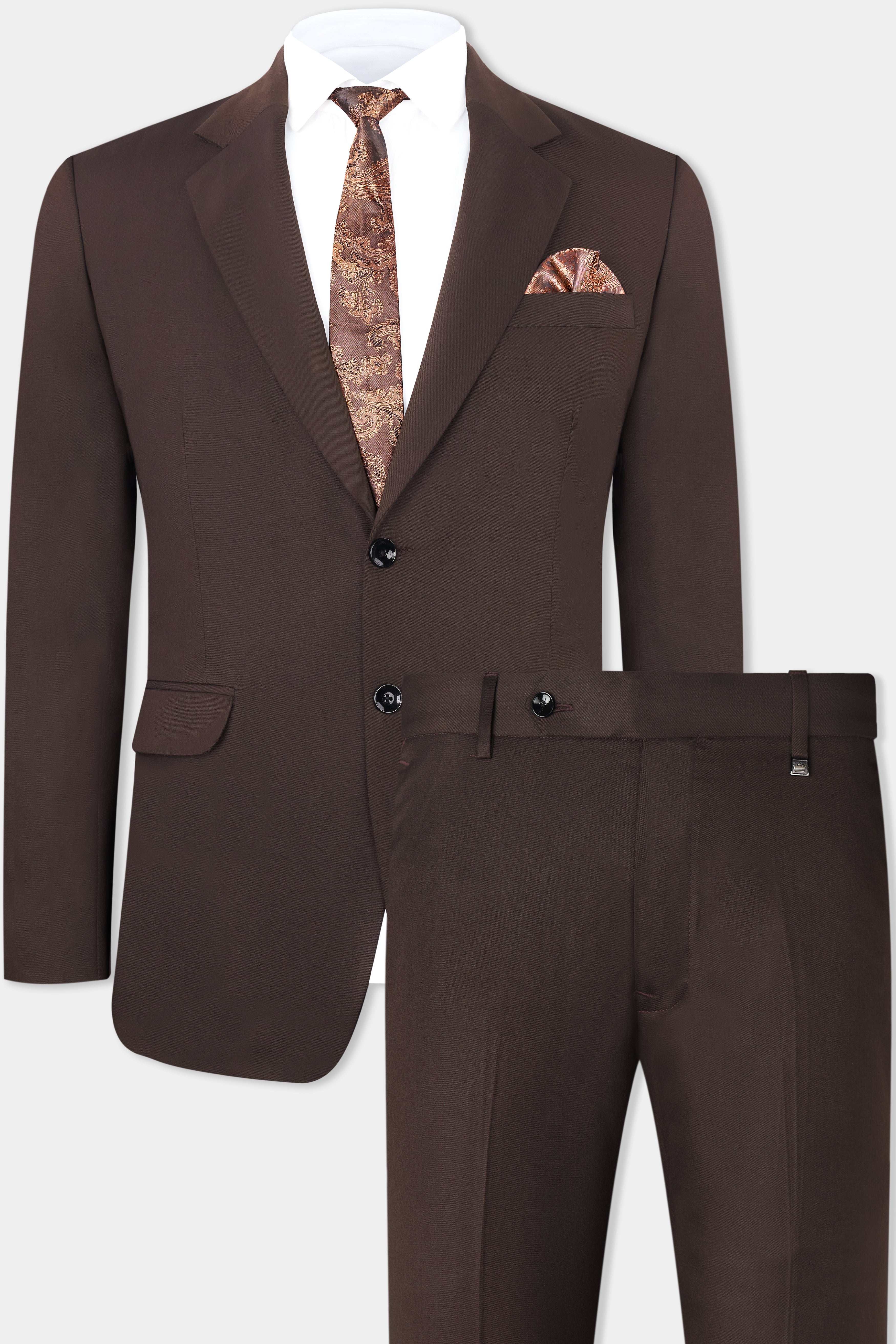 Sepia-Twine Brown Solid Wool Rich Single Breasted Slight Stretch SuitSepia-Twine Brown Solid Wool Rich Single Breasted Slight Stretch Suit