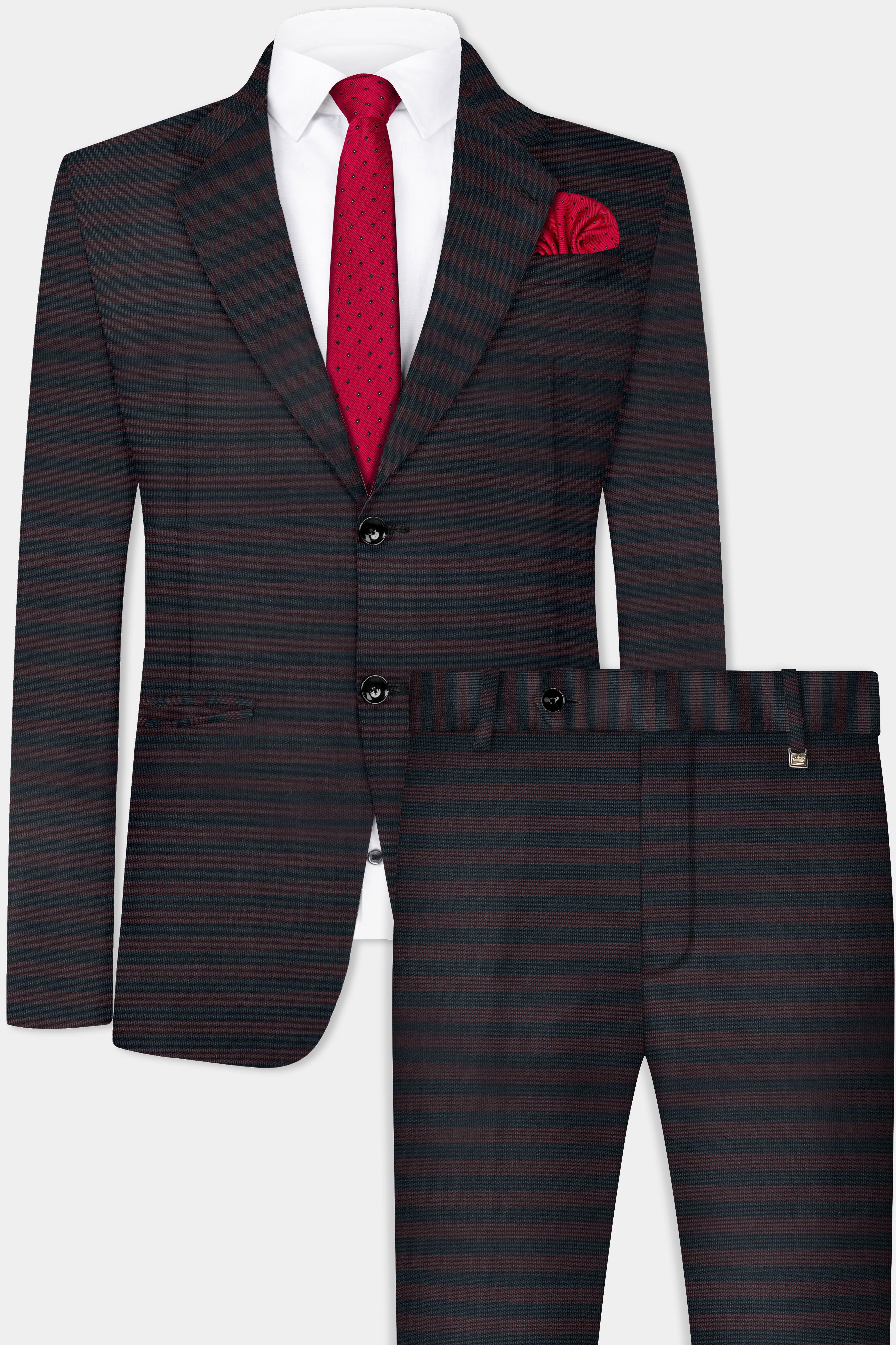 Ebony Clay Blue with Wine Berry Striped Wool Blend Patch Pocket Designer Sport SuitEbony Clay Blue with Wine Berry Striped Wool Blend Patch Pocket Designer Sport Suit