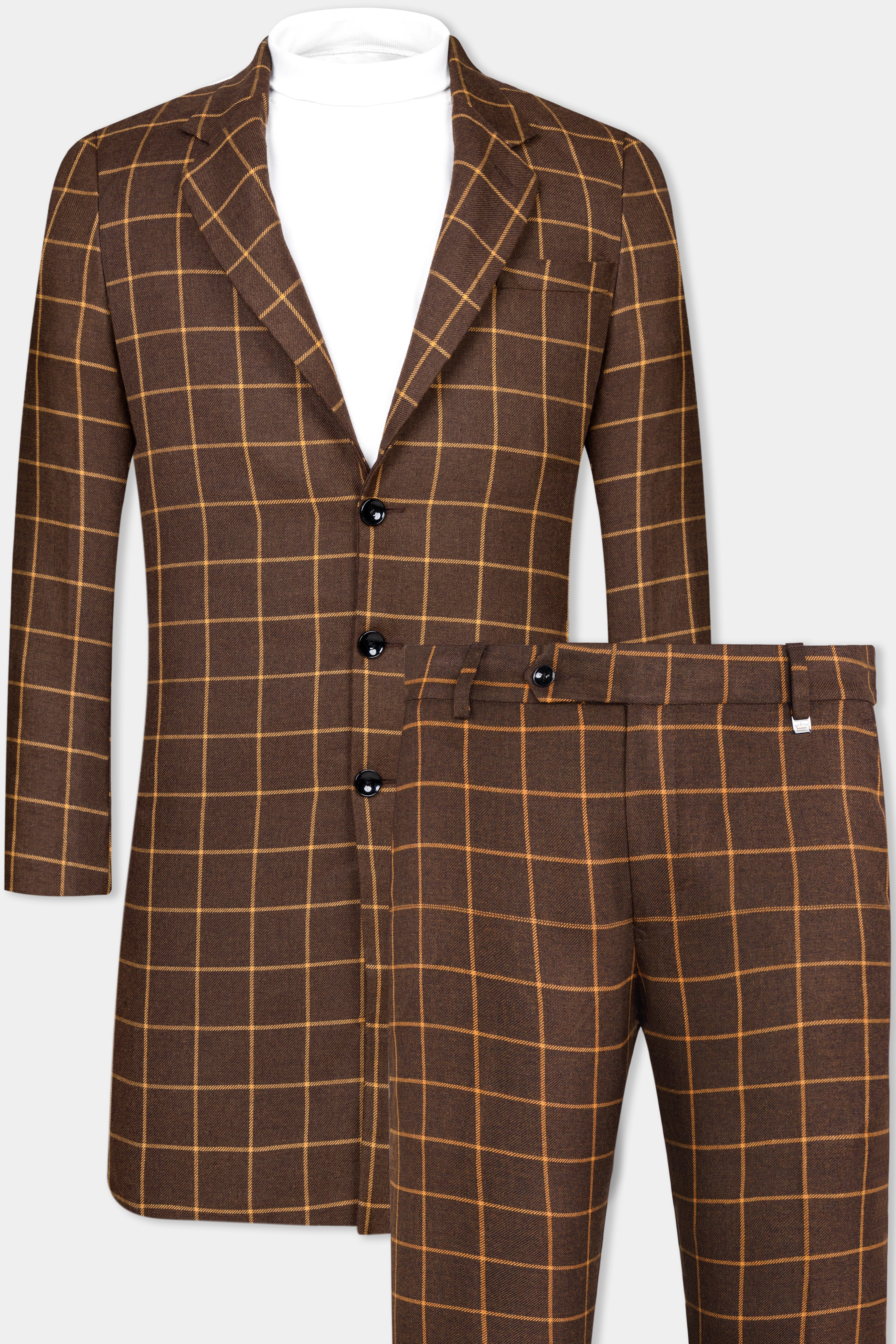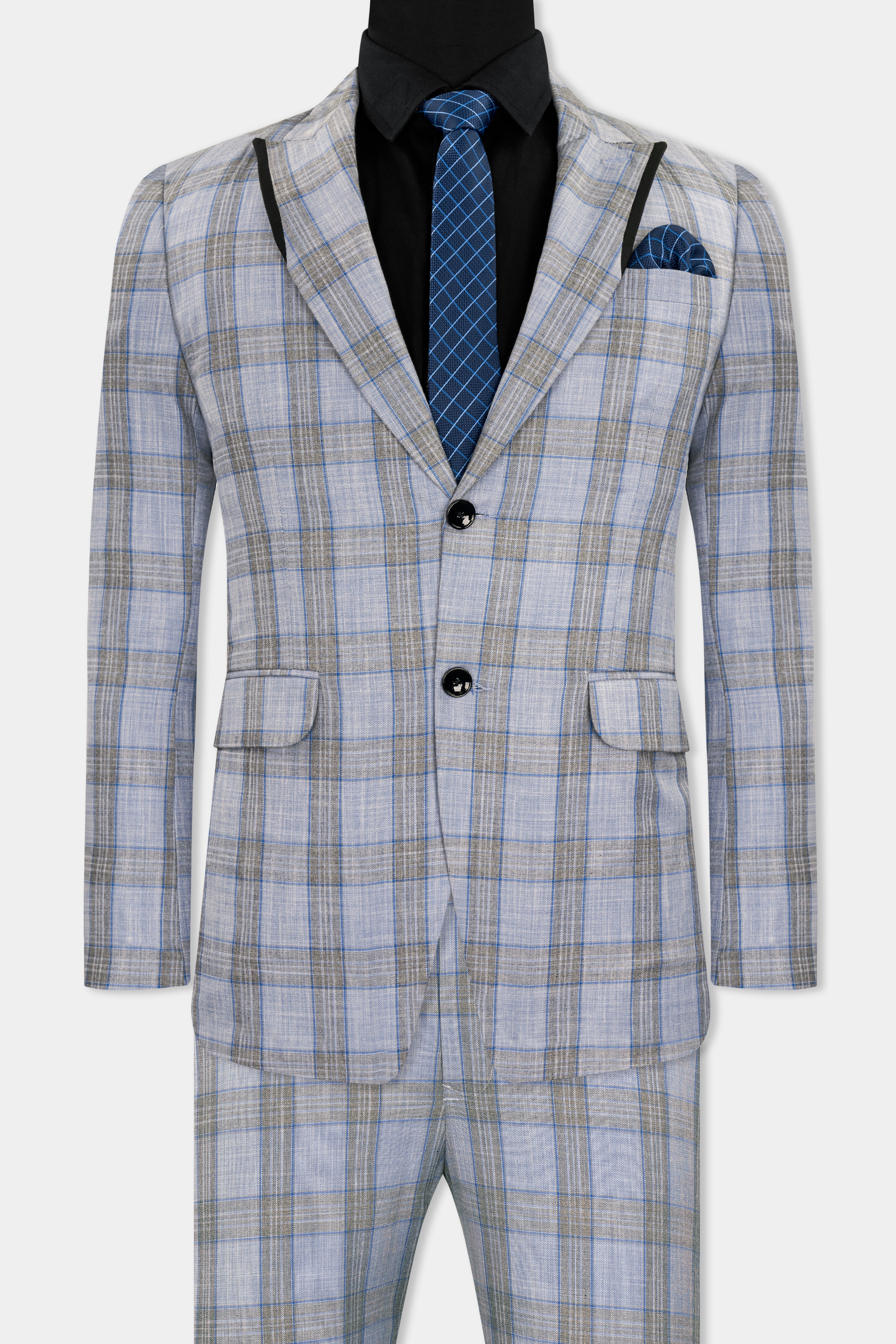 Slate Gray with Tapa Brown Plaid Wool Rich Designer Suit