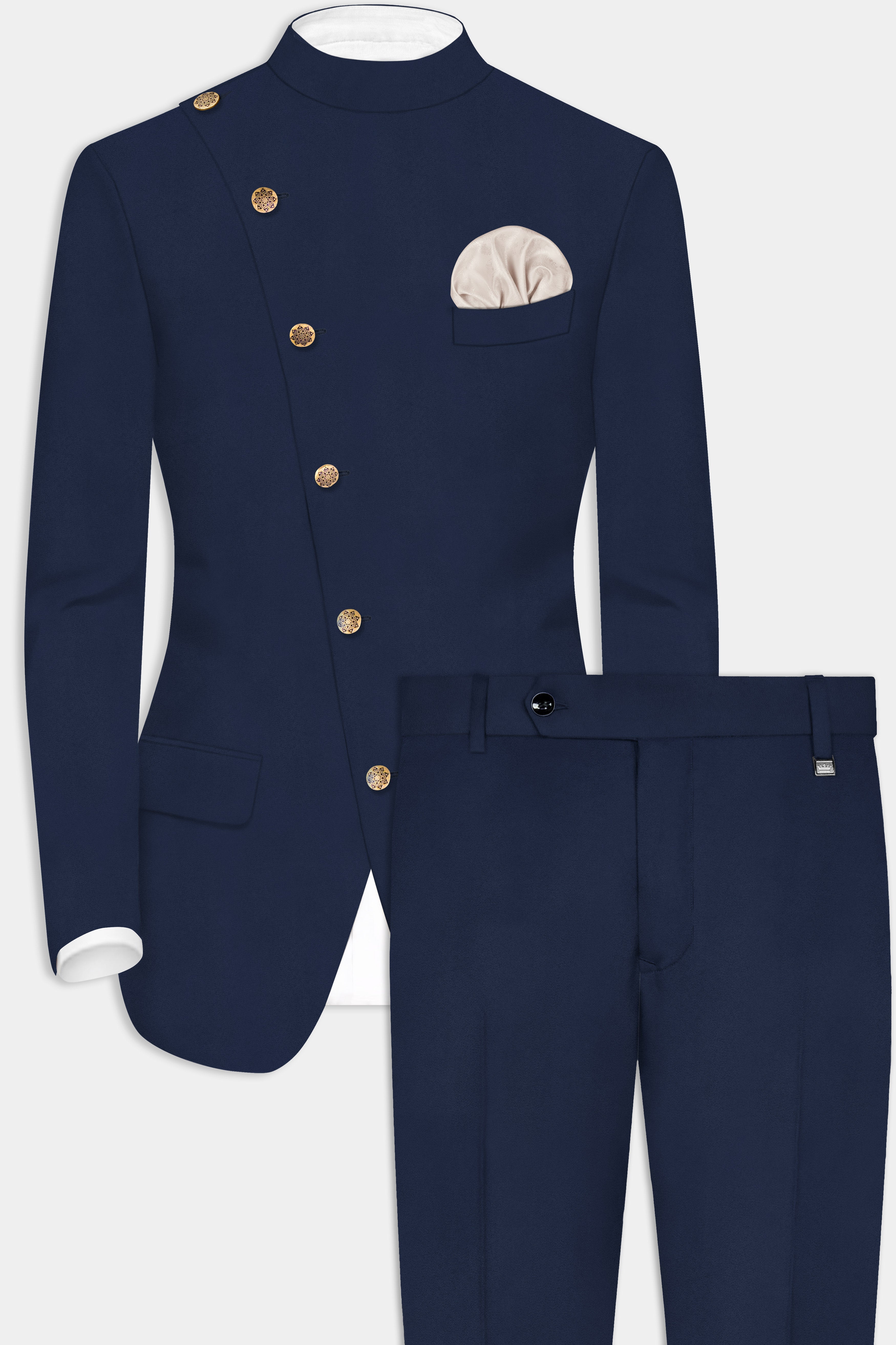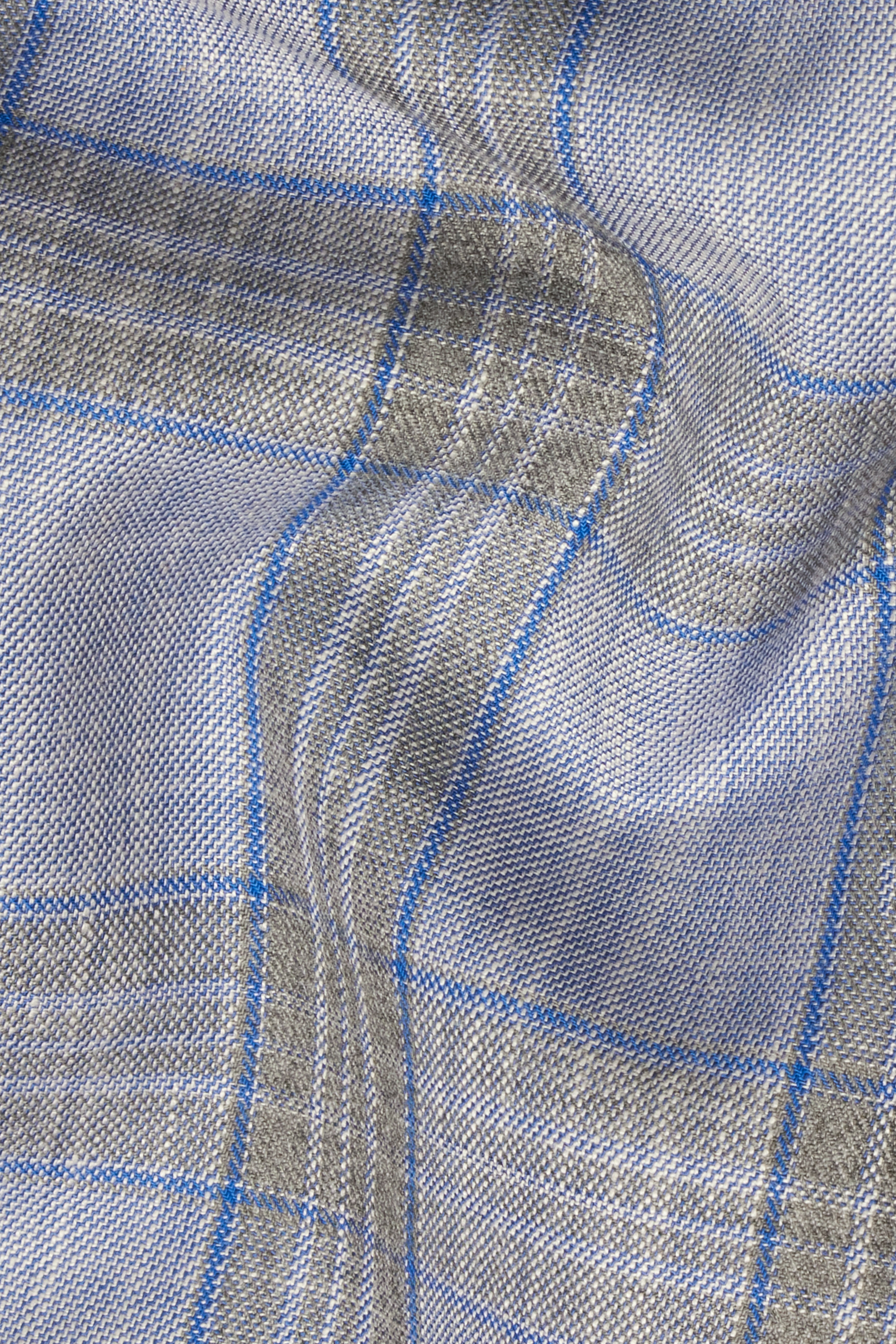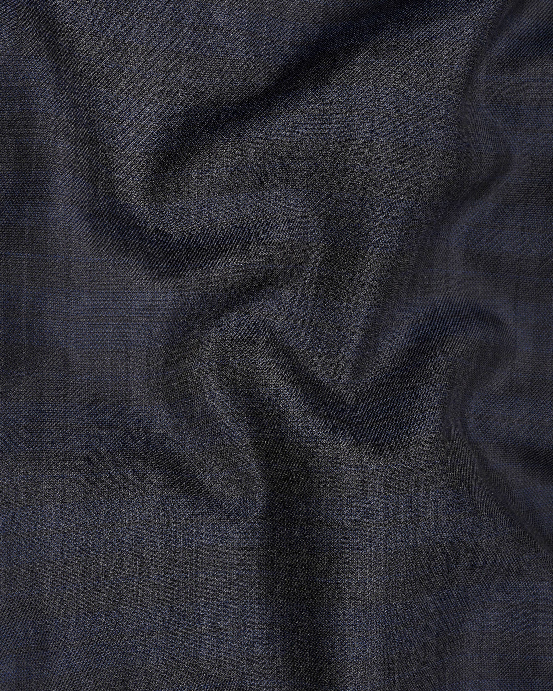 Bluish Windowpane Wool Rich Cross Placket Bandhgala SuitBluish Windowpane Wool Rich Cross Placket Bandhgala Suit