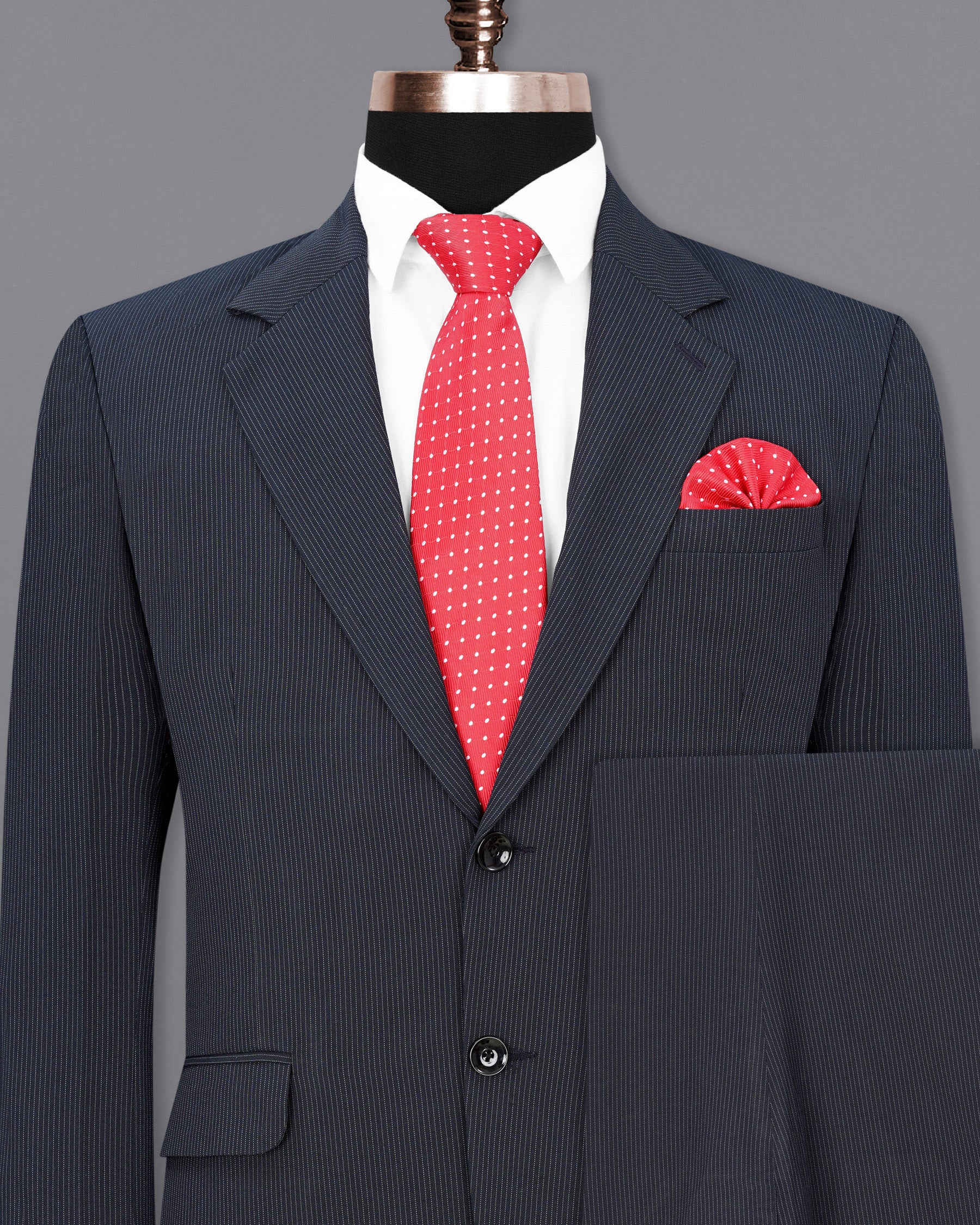 Bluish Blue And Jade Black Striped Wool Rich Double Breasted SuitBluish Blue And Jade Black Striped Wool Rich Double Breasted Suit