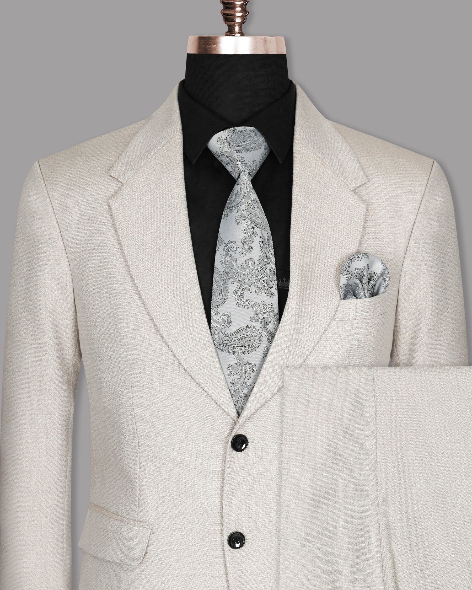 Spanish Gray Textured Wool Blend Single Breasted SuitSpanish Gray Textured Wool Blend Single Breasted Suit
